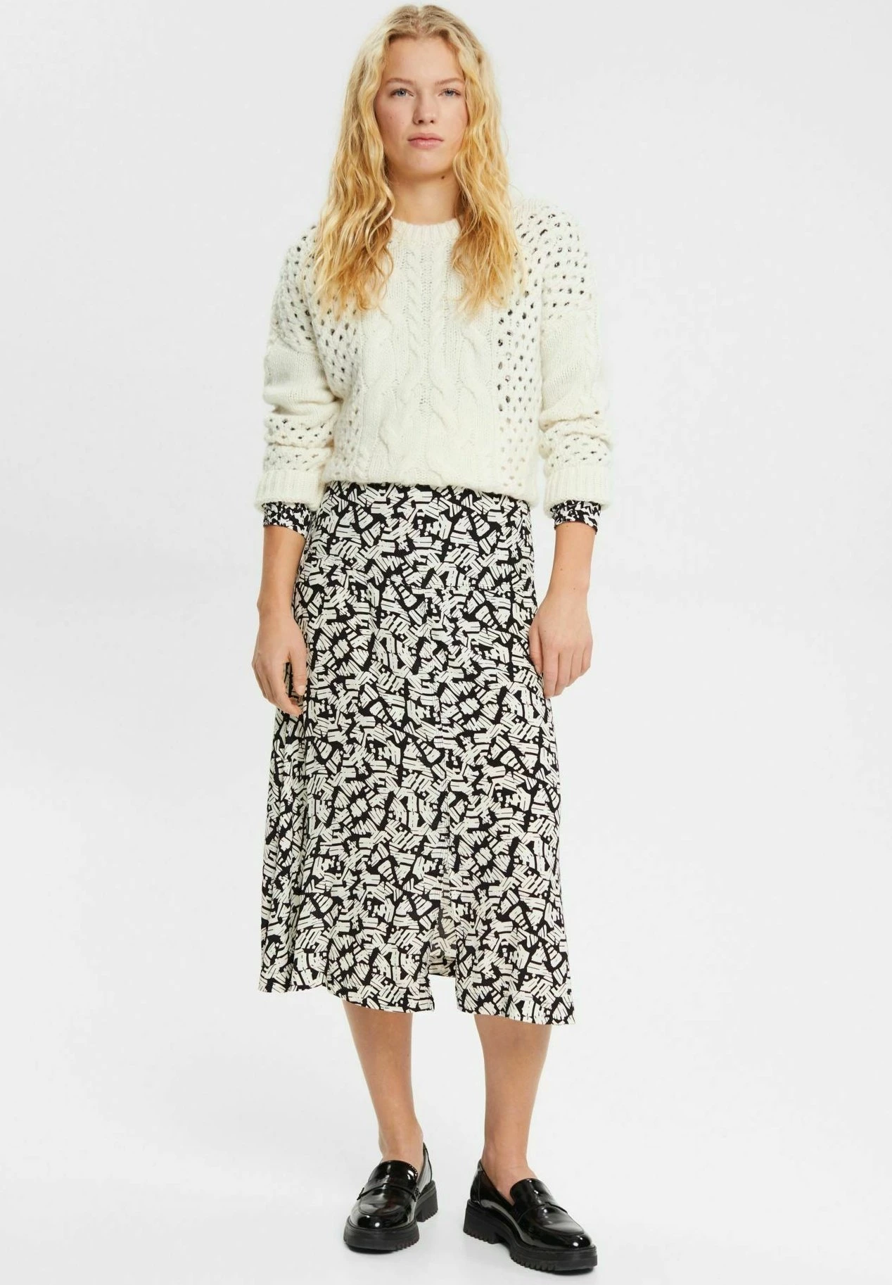 ESPRIT Gemusterter – A-Line Skirt – Black