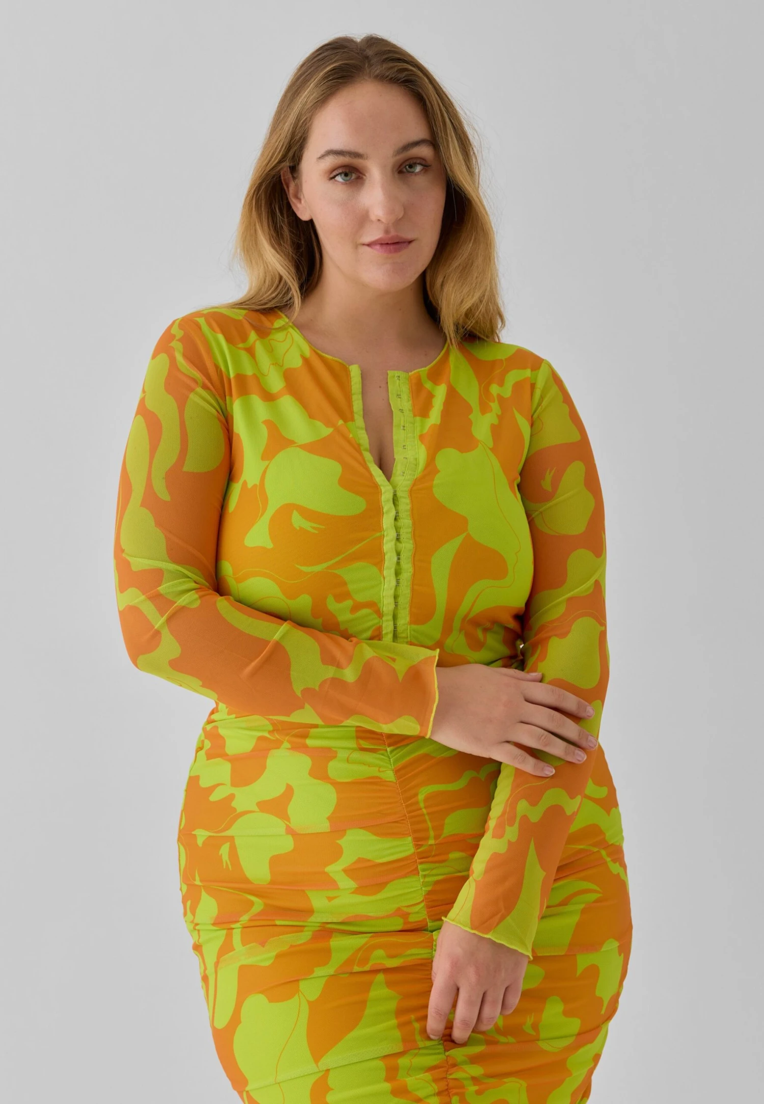 | Our model's height | Our model is 5' 10\" tall and is wearing size 18 |