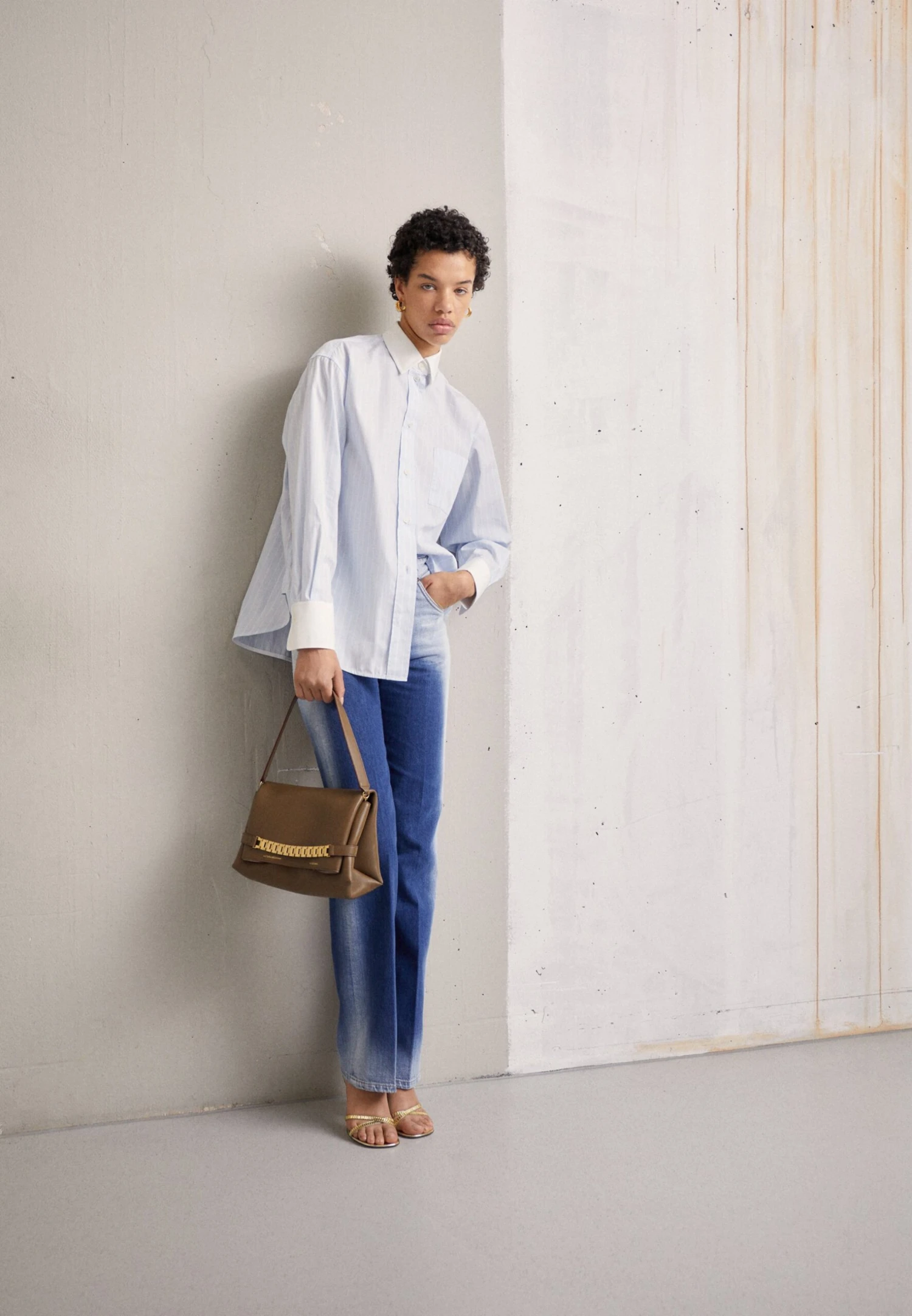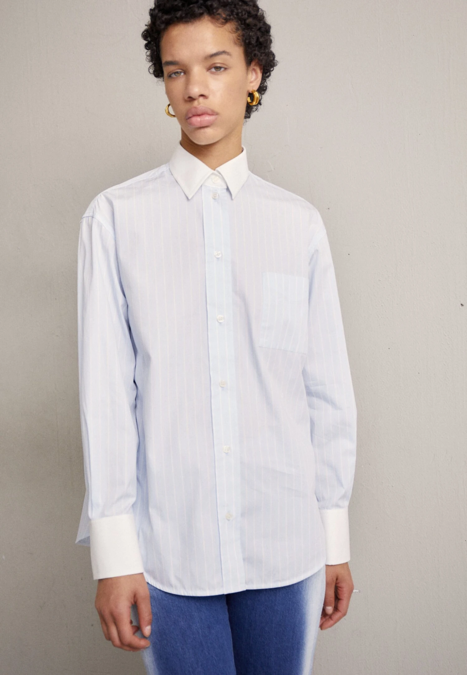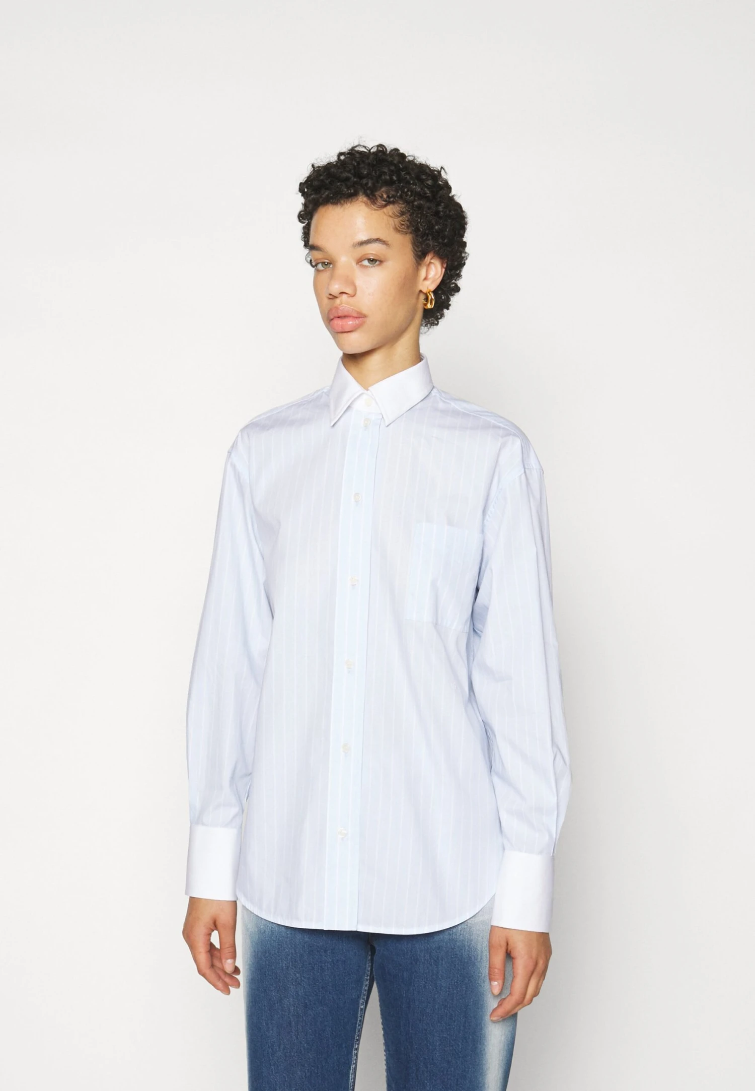 Victoria Beckham Oversized Mens – Button-Down Blouse – Sky Blue/White